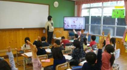1年生は,安全ノートをつかいながら,冬休みのくらしについて学習をしています。テレビに映ったイラストをみながら,どんなことに注意をしたらよいのか,意見交換をしています。