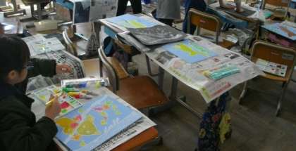 5年生は,社会科の学習を進めています。新聞やテレビでは,どのように記事がつくられるのか,調べています。4年生は版画に取り組んでいます。