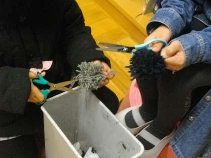 放課後まなび教室の様子です。宿題をしたり,昔遊びに親しんだりしています。毛糸を使って工作をしているお友達もいます。