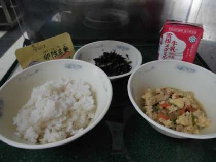 ・小松菜とひじきのいためものの,ひじきがシャキシャキしていて,ひじきの食感が良くてとてもおいしかったです。また,あげたま煮の卵とみつばの相性が合っていておいしかったです。