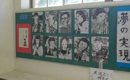 丁寧に取り組んだ版画作品が掲示されています。