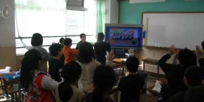 「京都市歌」の練習をビデオをみながら,手話を交えて取り組んでいます。