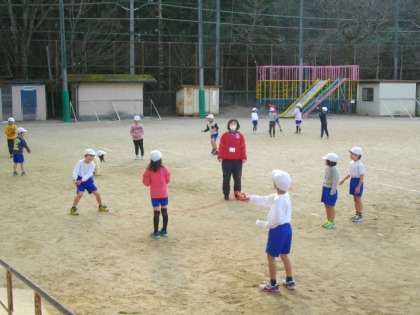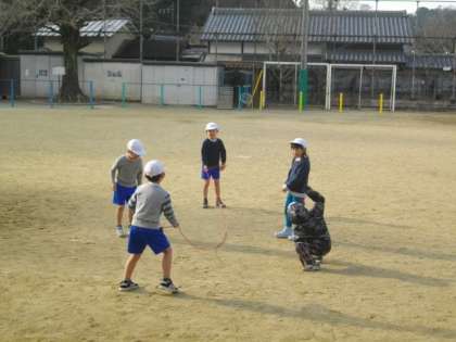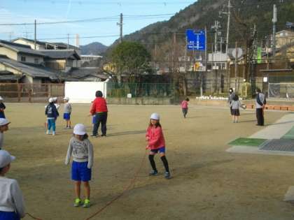 1時間目の様子です。運動場では3組と1年生が,なわとびにチャレンジしています。