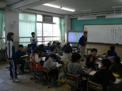 チャレンジ体験で,洛北中学校の生徒さんたちが,授業を参観しています。