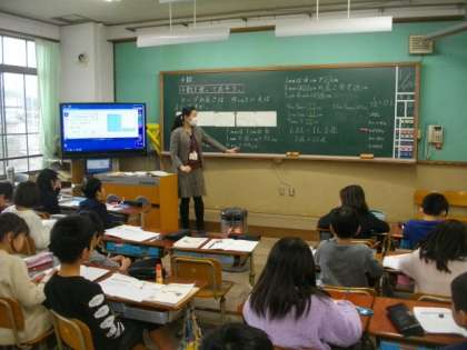 今日の3年生の算数は,教頭先生が「かさ」の授業を進めています。