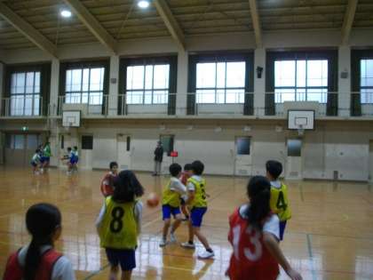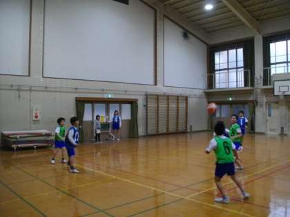5年生が体育でバスケットボールに取り組んでいます。
