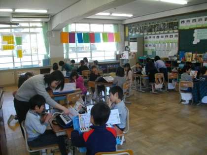 2年生は音楽,3年生は書写に取り組んでいます。