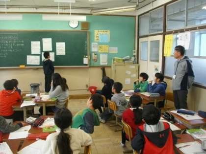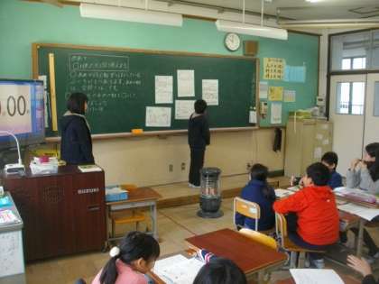 3年生は,算数で自分の考え方をホワイトボードに書いて発表しています。