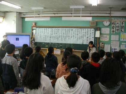 3組は,小さな巨匠展を見学した感想をまとめています。6年生は,卒業式に向けて歌の練習をしています。