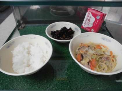 ・ちゃんぽんは,おもちみたいな食感で,ひじきは味がよくしみていて,とてもおいしかったです。