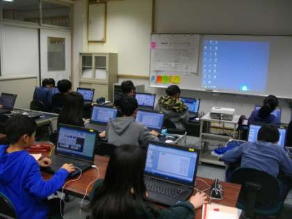 6年生が,コンピュータ室で,国語のまとめをしています。