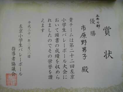 第22回左京小学生バレーボール大会5年の部,優勝おめでとうございます。