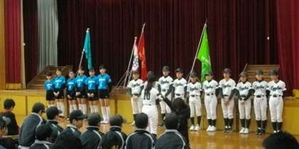 卒団する六年生の名前が呼ばれ,一人一人が元気よく返事をしました。