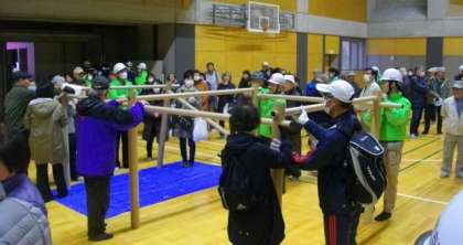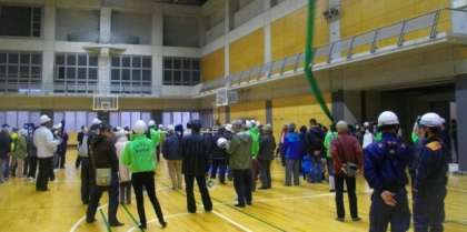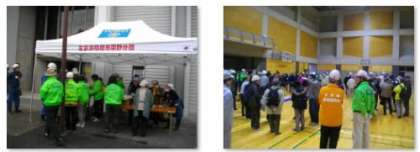 市原野学区総合防災訓練が,大学の運動場・体育館を使って実施されました。
