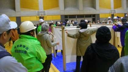 消火器を使った訓練や,段ボールの柱を使った避難所設営訓練などがありました。
