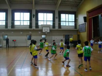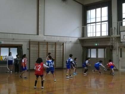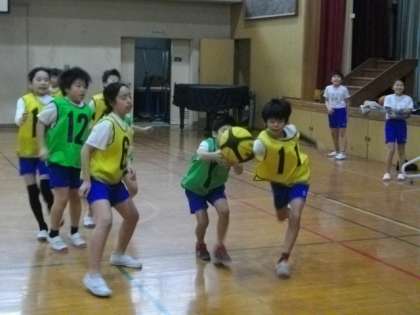 5年生は,体育館でバスケットボールに取り組んでいます。