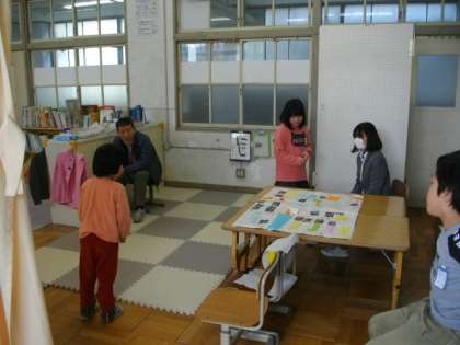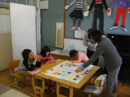 (一番右の写真は,5時間目にみんなでゲームに取り組んでいる様子です。)