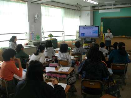 4年生は社会科で京都府について調べてまとめています。6年生は,国語の時間にプレゼンテーションソフトを使った発表会に取り組んでいます。