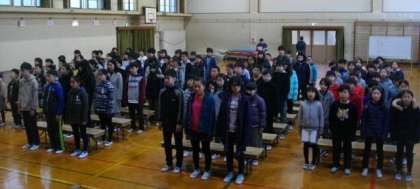 卒業式の練習を進めています。5,6年生が緊張した面持ちで練習に臨んでいます。