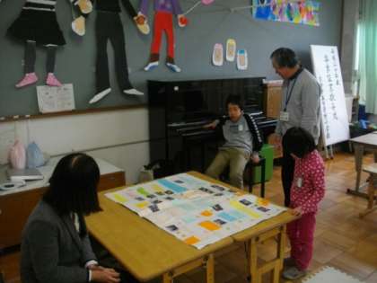 3組は数の学習を進めています。3年生は,1枚の写真からイメージをふくらませて発表をしています。5年生は,作品バッグ作りに取り組んでいます。