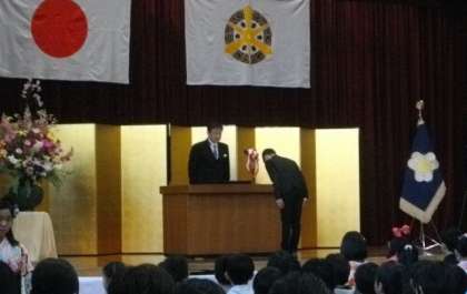 国歌斉唱のあと,校歌を合唱しました。(校歌の合唱は本年度はじめての取組です。)