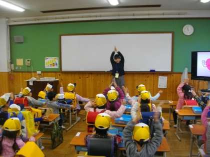 1年生がお帰りの準備をしています。