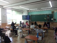 中庭のあじさいも,葉がでてきました。2階から見える葉桜も,すてきです。