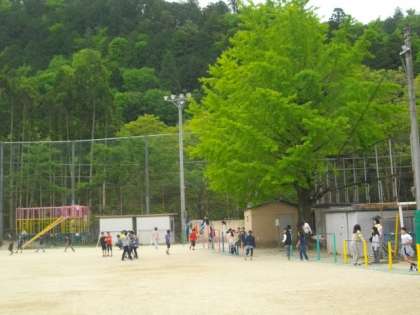 朝休みにたくさんの子どもたちが外で遊んでいます。