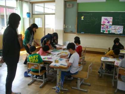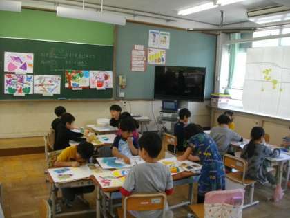 2年生は,図画工作科の時間に「ひみつのたまご」を描いています。