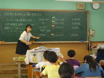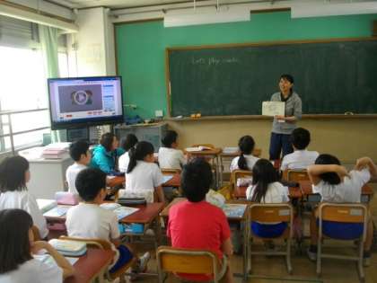 4年生は,外国語活動に取り組んでいます。最初に,「晴れ」や「曇り」など,天候の言い方を学習しました。6年生は,算数で,xに数をあてはめてyの値を求める方法を学習しています。