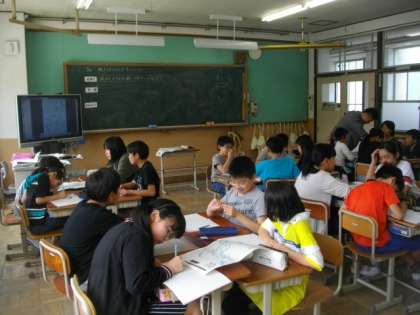 5年生は,降水量の比較をして意見を交換しています。6年生は,縄文時代について資料を見ながら話し合っています。