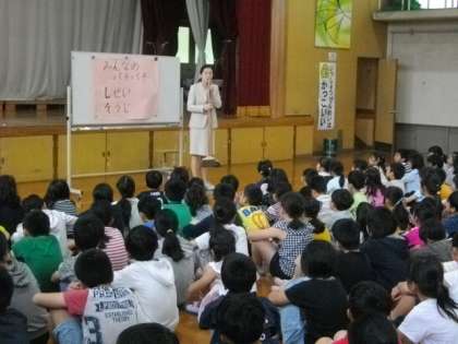 教頭先生から,みんなの「パチパチ」いいところ,ということで,「しそ」のお話がありました。「し」は,みんなが学習中にとてもよい姿勢で取り組んでいて素敵ですねという内容でした。「そ」は,みんなのために,最後まで一生懸命にそうじに取り組んでいますね,というお話でした。