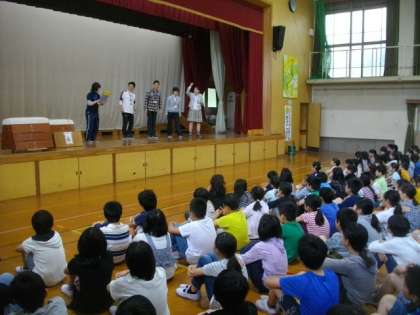 後半には,今年度の縦割り活動の進め方について,先生方が劇を交えながら紹介しました。