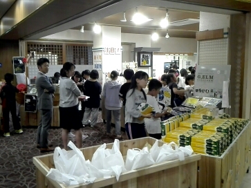 夕食がすみ、入浴も済ませました。就寝前に,売店にてお土産選びです。たくさんの商品の中から,お気に入りを探します。さすが6年生。値段を見て計算をしながらお買い物です。