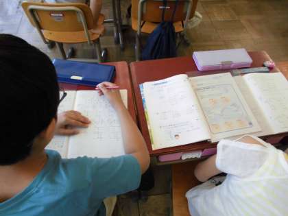 ノートにきちんとまとめ,グループで話合いをしながら学びを進めています。