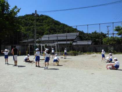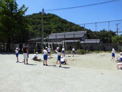 体育科で走り幅とびを学習しました。それだけ遠くにとべるか,競い合いながら一生懸命努力をしていました。