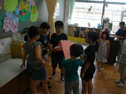 そうじのおわりには,みんなで集まって確認をしています。とても静かに取り組んでいますし,高学年がきとんとリーダーシップをとってくれています。