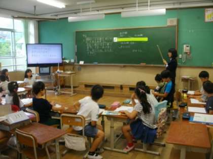 2年生は算数に取り組んでます。図をつかって解き方を考えています。