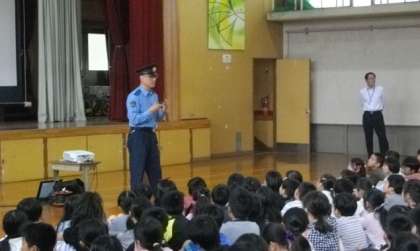 そのあと,下鴨警察署の方に来ていただき,みんなが安心して暮らすことができるように,「気を付けたいこと」と「してはいけないこと」について,冊子を見ながらお話をしていただきました。
