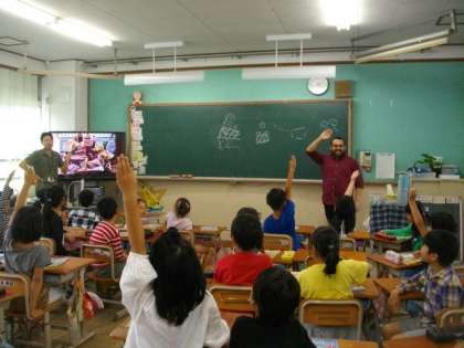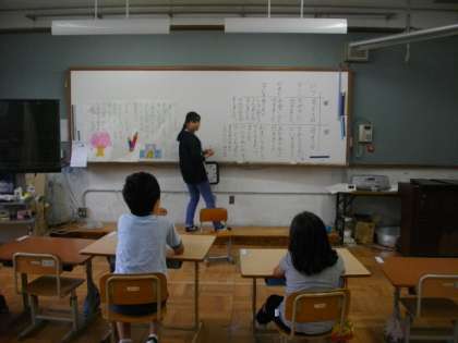 3年生が外国語活動に取り組んでいます。3組は国語の学習を進めています。