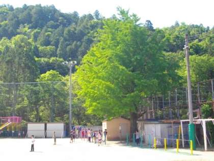 さわやかな朝になりました。外で遊んでいる子どもたちがたくさんいます。