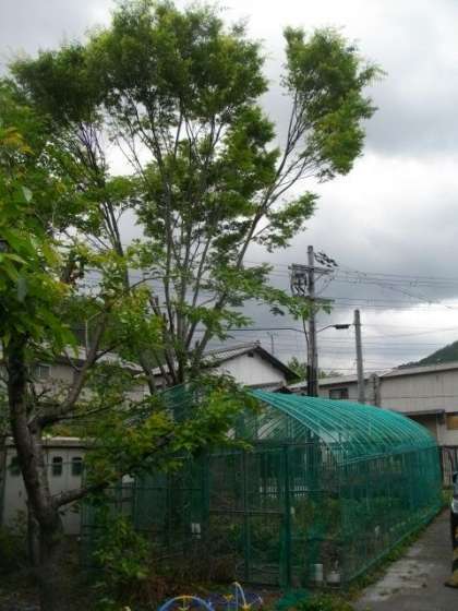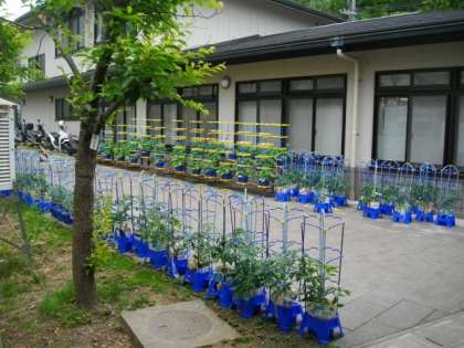 学校園の上に覆いかぶさっていた木の剪定を行ったので,日がよくあたるようになりました。ジャガイモやトマトを栽培しています。中庭の一部には芝生を育てています。
