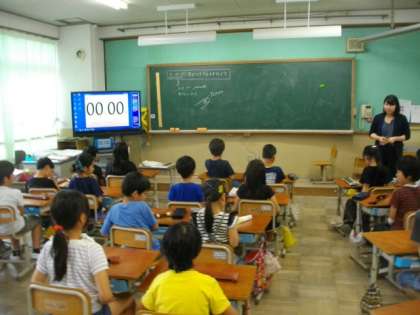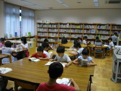 3年生は,音楽の授業が終わったところでした。4年生は図書室で読書をしています。