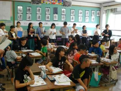 6校時に,5年生の子どもたちが元気よく学習に取り組んでいる様子を参観しました。そのあと,左京北支部の外国語活動主任の先生方と本校教員とが一緒になって,研究協議会を開催しました。