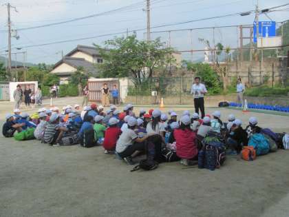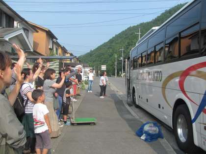 出発式をして,おうちの方などに見送っていただき出発しました。早朝より,ありがとうございました。