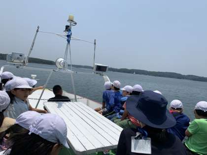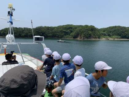 波が穏やかで、とても気持ちのよい風が吹いています。途中で真珠養殖のいかだをみることができました。