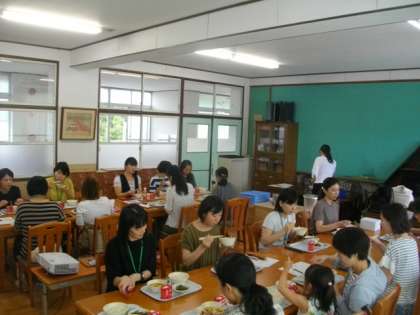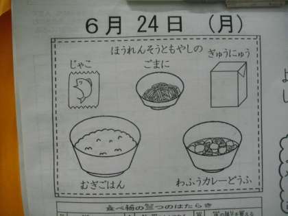 給食試食会を行いました。学校給食は「学校給食法」という法律に基づき,教育の一環として実施しています。そのことを含め,普段お子たちが食べている給食がどのような考えに基づいて献立がたてられ,どのように作られているのか等,学校給食について理解を深めていただく場として実施しております。今日の献立は,むぎごはん・わふうカレーどうふ・ごまに・じゃこ・牛乳です。