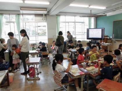 給食ができるまでの流れや,食育の取り組みなどについて知っていただくとても良い機会となりました。子どもたちが実際に食べている給食を食べていただいた後に,給食時間中の様子を参観していただきました。普段なかなか見ることができない姿を見ていただくことができました。保体委員の方々には準備や片づけ等お世話になりました。ありがとうございました。