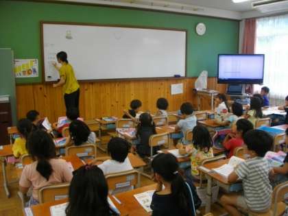 1年生は音楽で「しろくまのジェンカ」の歌をうたっています。2年生は,新出漢字の練習をしています。