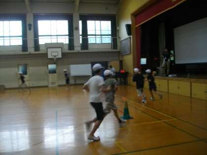 雨上がりで運動場が使えないため,体育館で活動しています。それぞれが自分のペースを守りながら,こつこつ取り組んでいます。